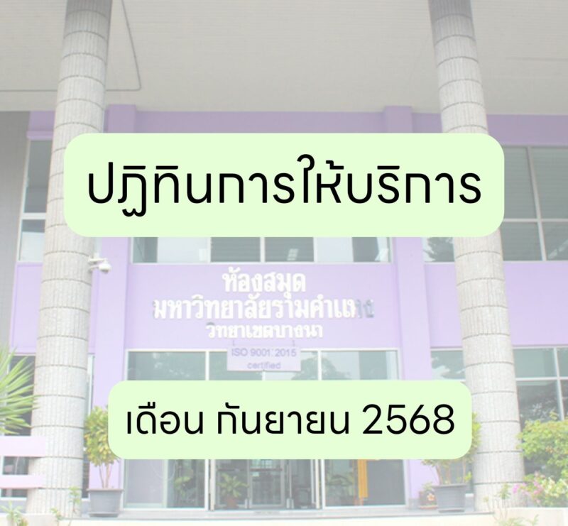 ปฏิทินการเปิดให้บริการ ห้องสมุดมหาวิทยาลัยรามคำแหง วิทยาเขตบางนา ประจำเดือน กันยายน 2568